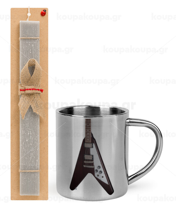 Guitar flying V, Πασχαλινή Λαμπάδα με μεταλλική κούπα θερμό (300ml) & κερί αρωματικό πλακέ (30cm) (ΓΚΡΙ)