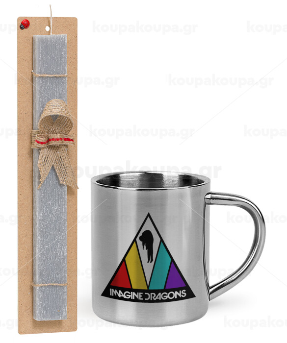 Imagine Dragons, Πασχαλινή Λαμπάδα με μεταλλική κούπα θερμό (300ml) & κερί αρωματικό πλακέ (30cm) (ΓΚΡΙ)