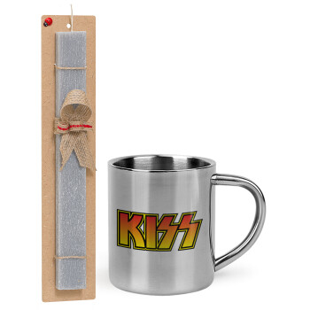 KISS, Πασχαλινή Λαμπάδα με μεταλλική κούπα θερμό (300ml) & κερί αρωματικό πλακέ (30cm) (ΓΚΡΙ)