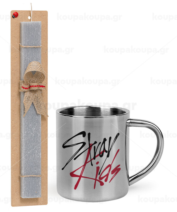 Stray Kids, Πασχαλινή Λαμπάδα με μεταλλική κούπα θερμό (300ml) & κερί αρωματικό πλακέ (30cm) (ΓΚΡΙ)
