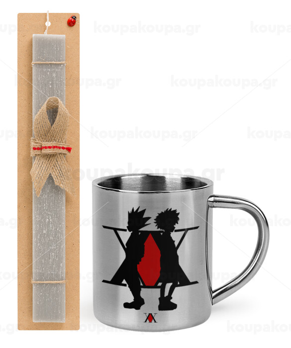 hunter x hunter, Πασχαλινή Λαμπάδα με μεταλλική κούπα θερμό (300ml) & κερί αρωματικό πλακέ (30cm) (ΓΚΡΙ)