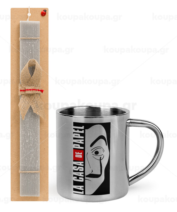 La casa de papel vertical, Πασχαλινή Λαμπάδα με μεταλλική κούπα θερμό (300ml) & κερί αρωματικό πλακέ (30cm) (ΓΚΡΙ)