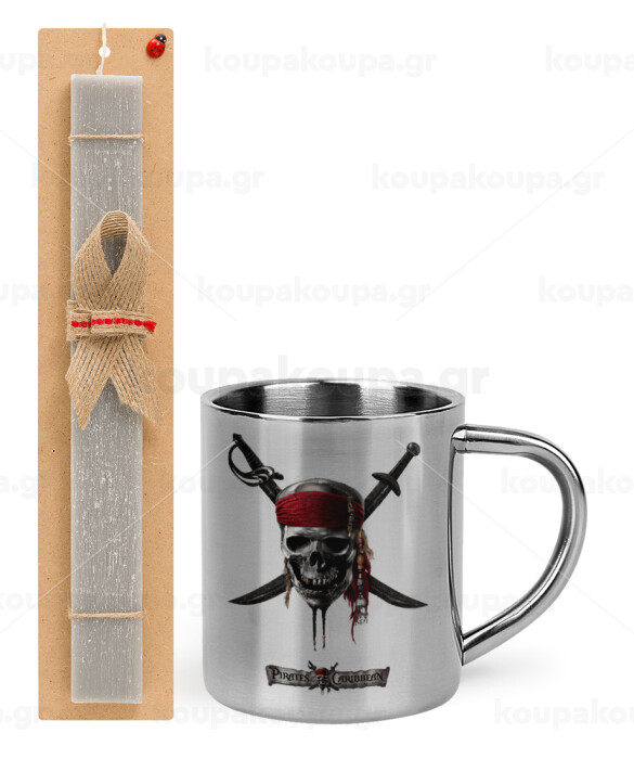 Pirates of the Caribbean, Πασχαλινή Λαμπάδα με μεταλλική κούπα θερμό (300ml) & κερί αρωματικό πλακέ (30cm) (ΓΚΡΙ)