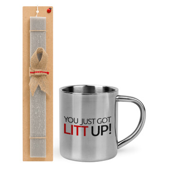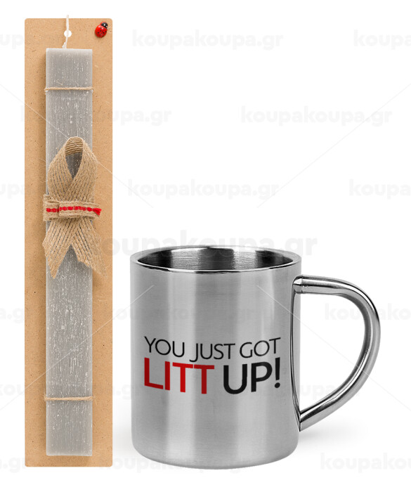 Suits You Just Got Litt Up! , Πασχαλινή Λαμπάδα με μεταλλική κούπα θερμό (300ml) & κερί αρωματικό πλακέ (30cm) (ΓΚΡΙ)