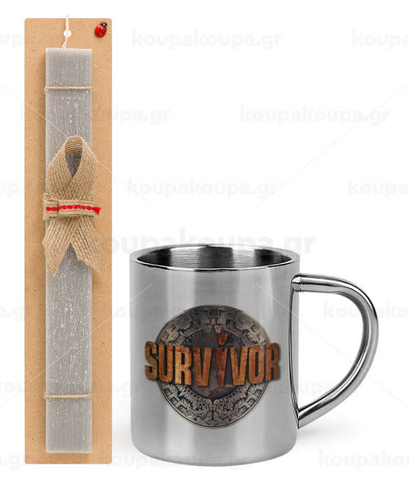 Survivor, Πασχαλινή Λαμπάδα με μεταλλική κούπα θερμό (300ml) & κερί αρωματικό πλακέ (30cm) (ΓΚΡΙ)