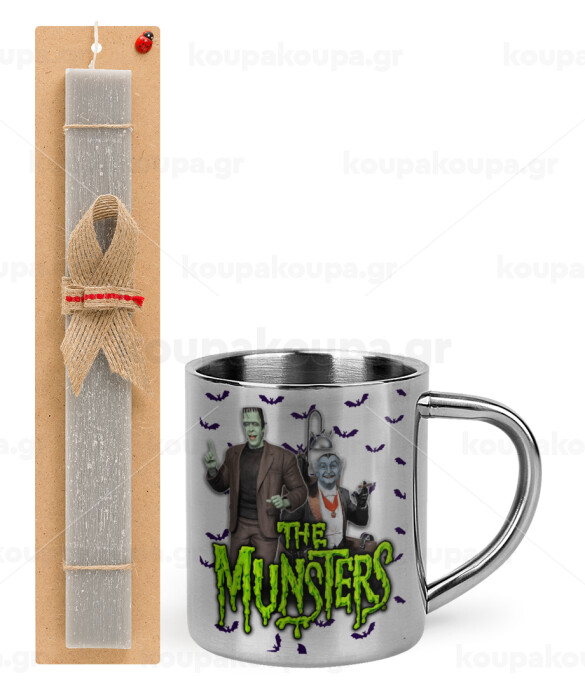 The munsters, Πασχαλινή Λαμπάδα με μεταλλική κούπα θερμό (300ml) & κερί αρωματικό πλακέ (30cm) (ΓΚΡΙ)