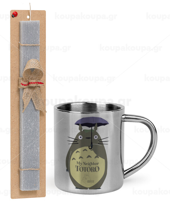 Totoro from My Neighbor Totoro, Πασχαλινή Λαμπάδα με μεταλλική κούπα θερμό (300ml) & κερί αρωματικό πλακέ (30cm) (ΓΚΡΙ)