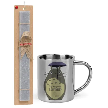 Totoro from My Neighbor Totoro, Πασχαλινή Λαμπάδα με μεταλλική κούπα θερμό (300ml) & κερί αρωματικό πλακέ (30cm) (ΓΚΡΙ)