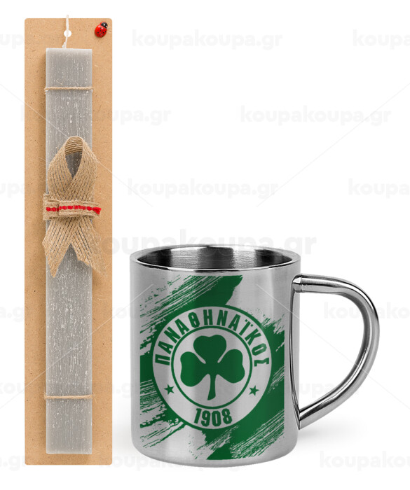 Π.Α.Ο., Πασχαλινή Λαμπάδα με μεταλλική κούπα θερμό (300ml) & κερί αρωματικό πλακέ (30cm) (ΓΚΡΙ)