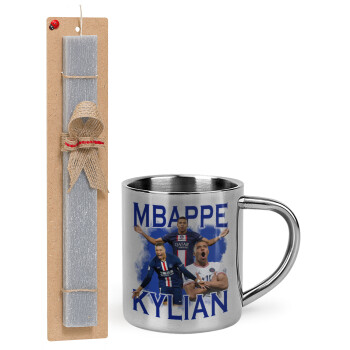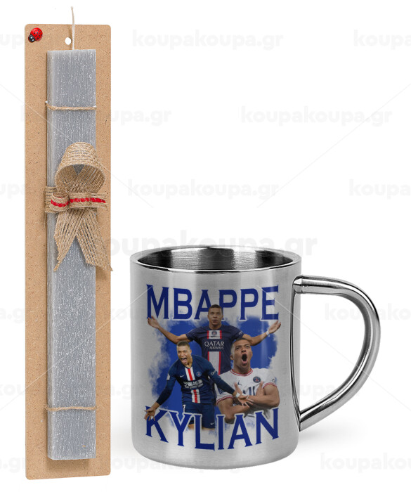 Kylian mbappe, Πασχαλινή Λαμπάδα με μεταλλική κούπα θερμό (300ml) & κερί αρωματικό πλακέ (30cm) (ΓΚΡΙ)