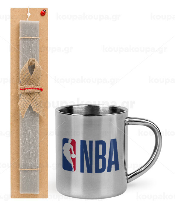 NBA Classic, Πασχαλινή Λαμπάδα με μεταλλική κούπα θερμό (300ml) & κερί αρωματικό πλακέ (30cm) (ΓΚΡΙ)