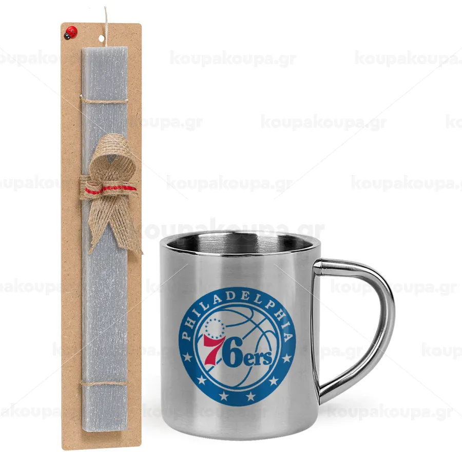 Philadelphia 76ers, Πασχαλινή Λαμπάδα με μεταλλική κούπα θερμό (300ml) & κερί αρωματικό πλακέ (30cm) (ΓΚΡΙ)