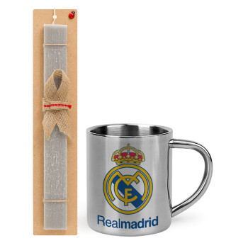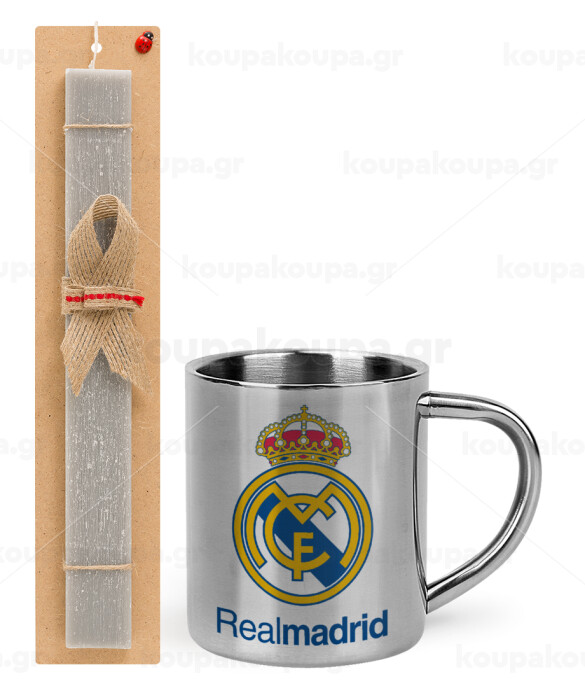 Real Madrid CF, Πασχαλινή Λαμπάδα με μεταλλική κούπα θερμό (300ml) & κερί αρωματικό πλακέ (30cm) (ΓΚΡΙ)