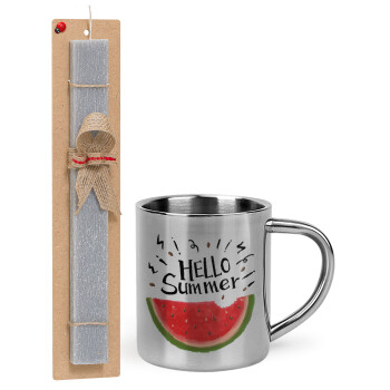 Summer Watermelon, Πασχαλινή Λαμπάδα με μεταλλική κούπα θερμό (300ml) & κερί αρωματικό πλακέ (30cm) (ΓΚΡΙ)