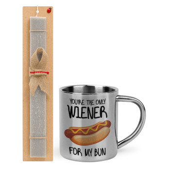 Πασχαλινή Λαμπάδα με μεταλλική κούπα θερμό (300ml) & κερί αρωματικό πλακέ (30cm) (ΓΚΡΙ) με θέμα Αγάπη, ερωτευμένοι