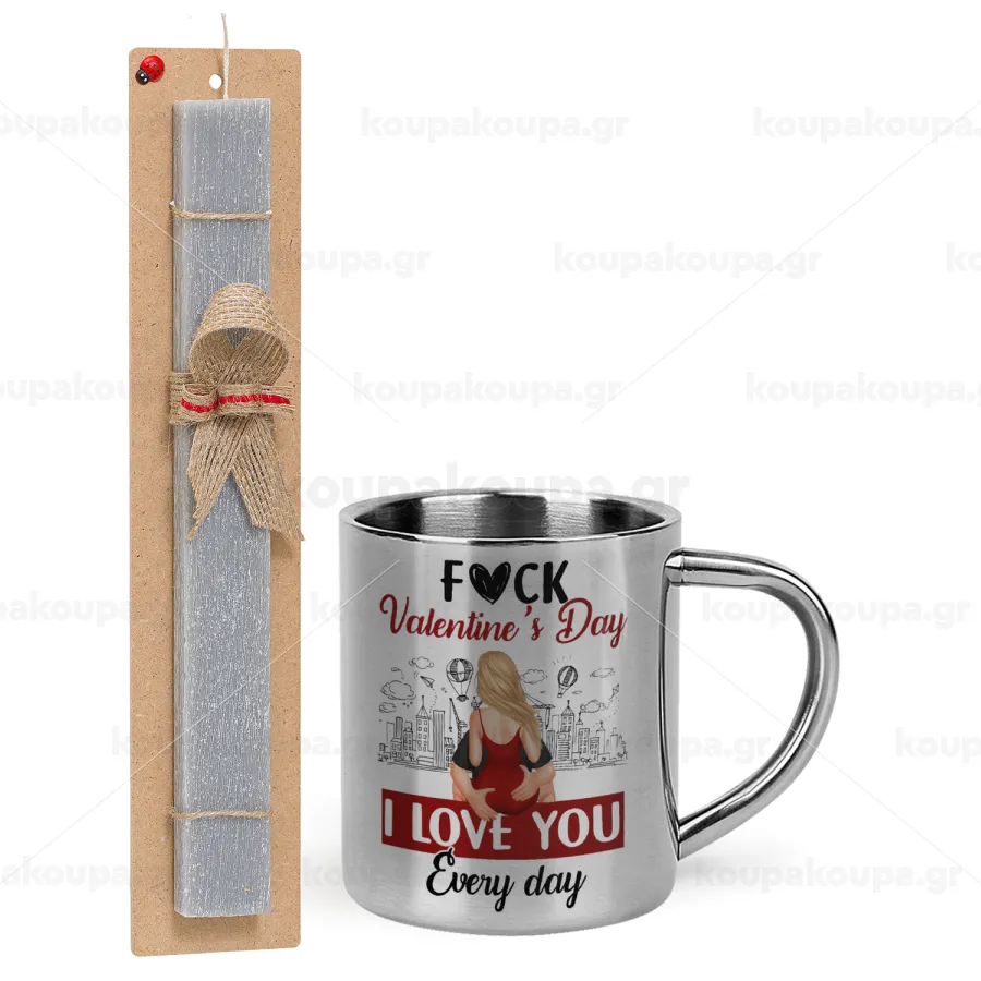 I love You Everyday , Πασχαλινή Λαμπάδα με μεταλλική κούπα θερμό (300ml) & κερί αρωματικό πλακέ (30cm) (ΓΚΡΙ)