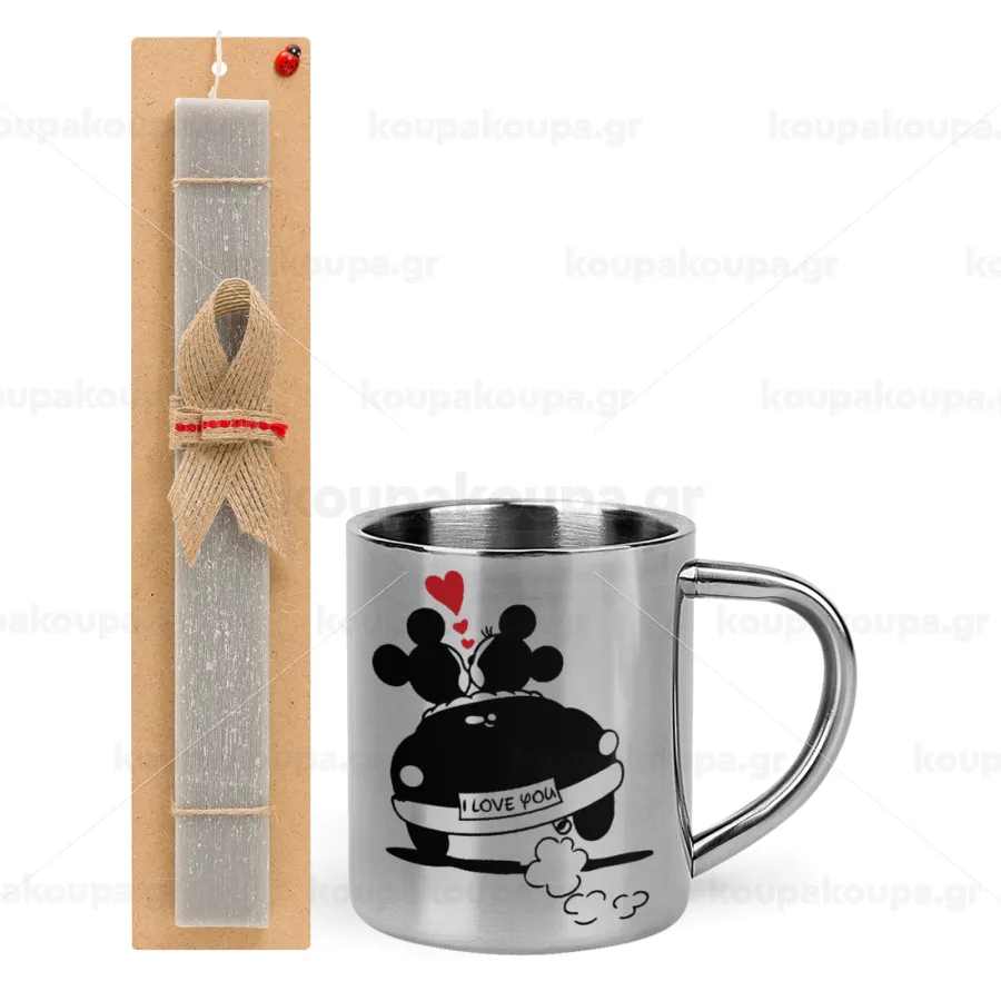 Love Car, Πασχαλινή Λαμπάδα με μεταλλική κούπα θερμό (300ml) & κερί αρωματικό πλακέ (30cm) (ΓΚΡΙ)
