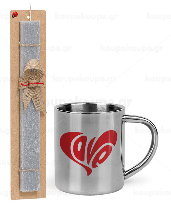 Love, Πασχαλινή Λαμπάδα με μεταλλική κούπα θερμό (300ml) & κερί αρωματικό πλακέ (30cm) (ΓΚΡΙ)