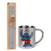 Stitch heart, Πασχαλινή Λαμπάδα με μεταλλική κούπα θερμό (300ml) & κερί αρωματικό πλακέ (30cm) (ΓΚΡΙ)