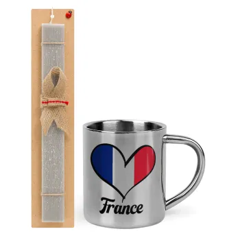 France flag, Πασχαλινή Λαμπάδα με μεταλλική κούπα θερμό (300ml) & κερί αρωματικό πλακέ (30cm) (ΓΚΡΙ)