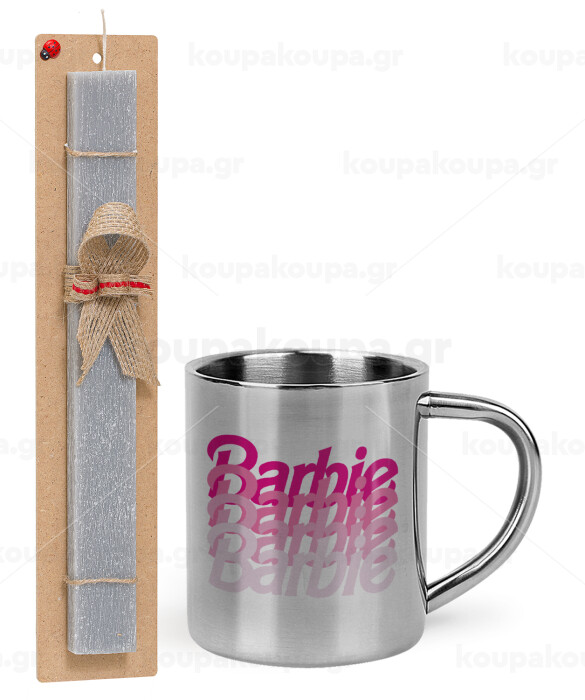 Barbie repeat, Πασχαλινή Λαμπάδα με μεταλλική κούπα θερμό (300ml) & κερί αρωματικό πλακέ (30cm) (ΓΚΡΙ)