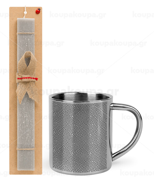 Doodle Maze, Πασχαλινή Λαμπάδα με μεταλλική κούπα θερμό (300ml) & κερί αρωματικό πλακέ (30cm) (ΓΚΡΙ)