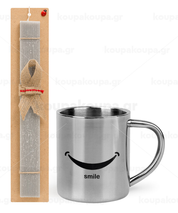 Smile!!!, Πασχαλινή Λαμπάδα με μεταλλική κούπα θερμό (300ml) & κερί αρωματικό πλακέ (30cm) (ΓΚΡΙ)
