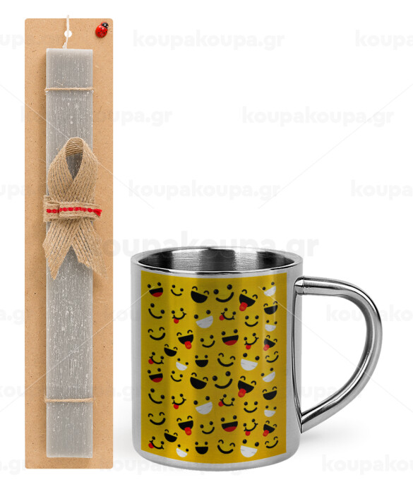 Smilies , Πασχαλινή Λαμπάδα με μεταλλική κούπα θερμό (300ml) & κερί αρωματικό πλακέ (30cm) (ΓΚΡΙ)