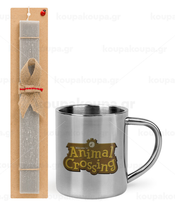 Animal Crossing, Πασχαλινή Λαμπάδα με μεταλλική κούπα θερμό (300ml) & κερί αρωματικό πλακέ (30cm) (ΓΚΡΙ)