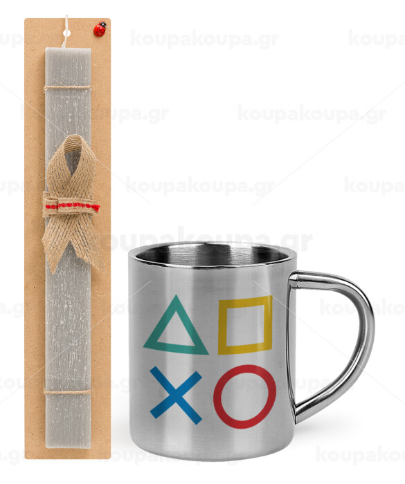Gaming Symbols, Πασχαλινή Λαμπάδα με μεταλλική κούπα θερμό (300ml) & κερί αρωματικό πλακέ (30cm) (ΓΚΡΙ)