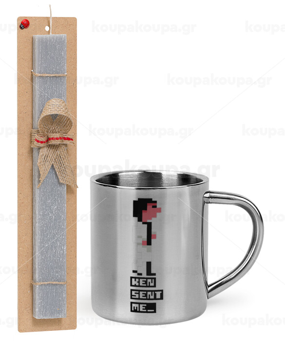 Ken sent me, Leisure Suit Larry, Πασχαλινή Λαμπάδα με μεταλλική κούπα θερμό (300ml) & κερί αρωματικό πλακέ (30cm) (ΓΚΡΙ)
