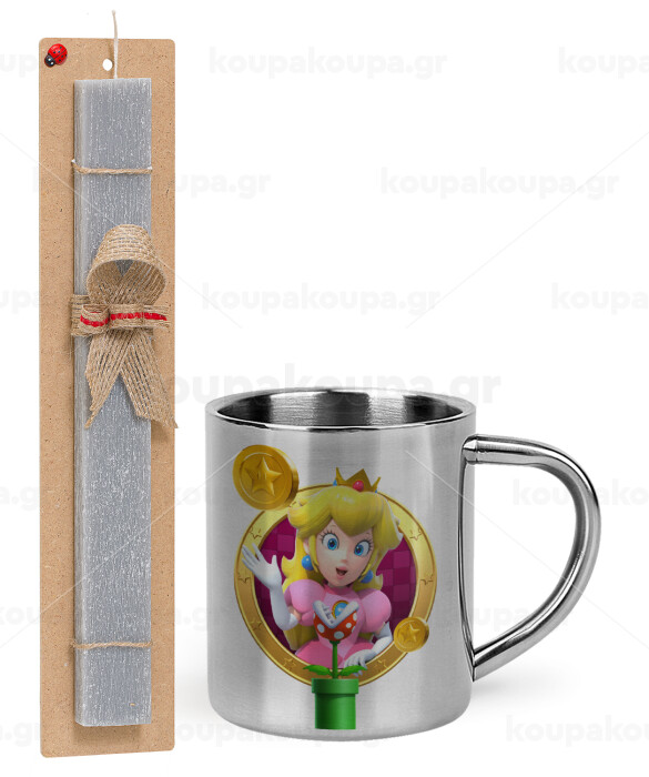 Princess Peach Toadstool, Πασχαλινή Λαμπάδα με μεταλλική κούπα θερμό (300ml) & κερί αρωματικό πλακέ (30cm) (ΓΚΡΙ)