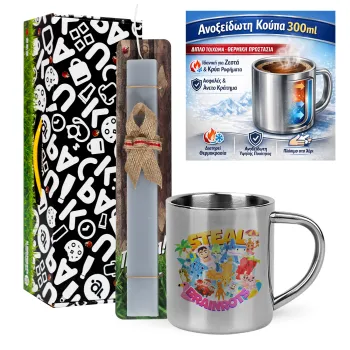 Roblox Steal a Brainrot, Πασχαλινή Λαμπάδα με μεταλλική κούπα θερμό (300ml) & κερί αρωματικό πλακέ (30cm) (ΓΚΡΙ)
