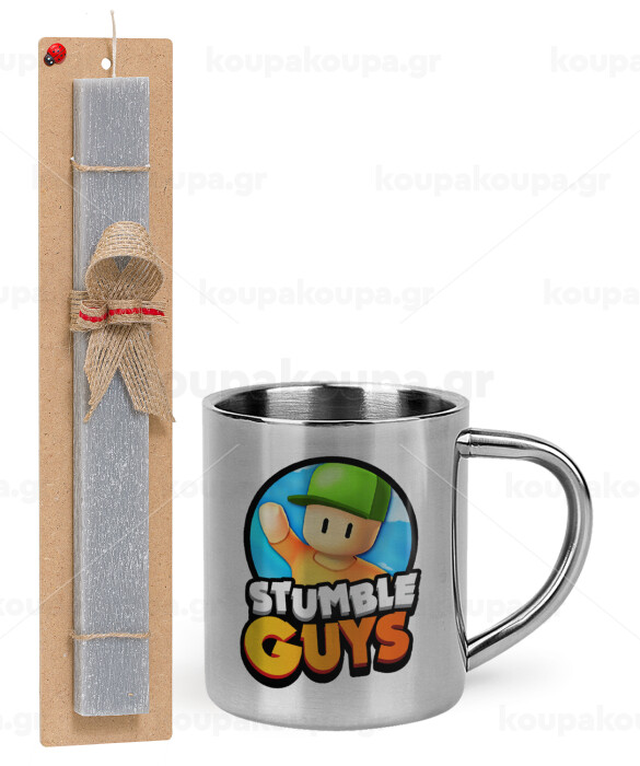 Stumble Guys, Πασχαλινή Λαμπάδα με μεταλλική κούπα θερμό (300ml) & κερί αρωματικό πλακέ (30cm) (ΓΚΡΙ)