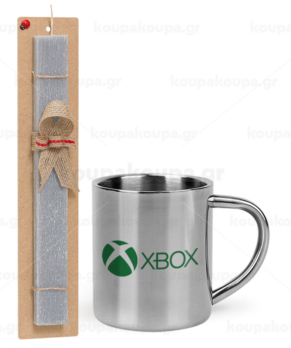 xbox, Πασχαλινή Λαμπάδα με μεταλλική κούπα θερμό (300ml) & κερί αρωματικό πλακέ (30cm) (ΓΚΡΙ)