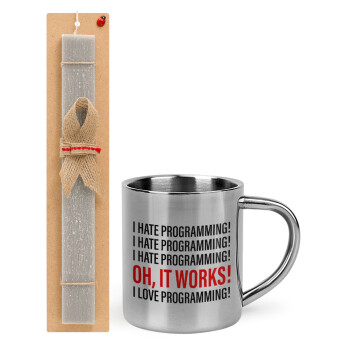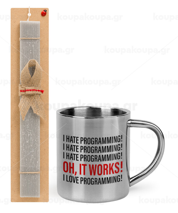I hate programming!!!, Πασχαλινή Λαμπάδα με μεταλλική κούπα θερμό (300ml) & κερί αρωματικό πλακέ (30cm) (ΓΚΡΙ)