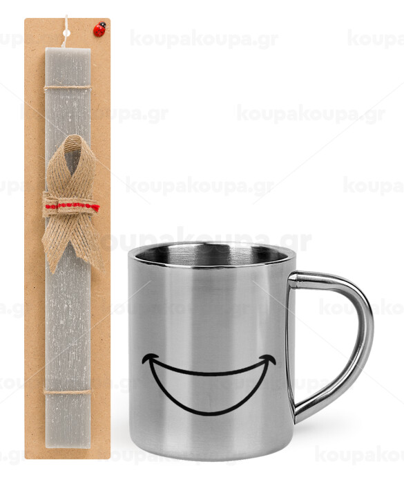 Χαμογέλα, Πασχαλινή Λαμπάδα με μεταλλική κούπα θερμό (300ml) & κερί αρωματικό πλακέ (30cm) (ΓΚΡΙ)