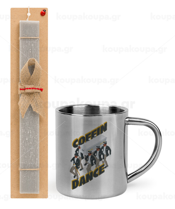 Coffin Dance!, Πασχαλινή Λαμπάδα με μεταλλική κούπα θερμό (300ml) & κερί αρωματικό πλακέ (30cm) (ΓΚΡΙ)