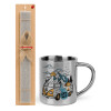 Life is a trip, Πασχαλινή Λαμπάδα με μεταλλική κούπα θερμό (300ml) & κερί αρωματικό πλακέ (30cm) (ΓΚΡΙ)