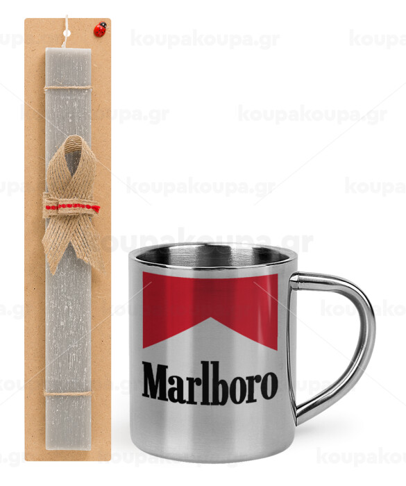 Marlboro, Πασχαλινή Λαμπάδα με μεταλλική κούπα θερμό (300ml) & κερί αρωματικό πλακέ (30cm) (ΓΚΡΙ)