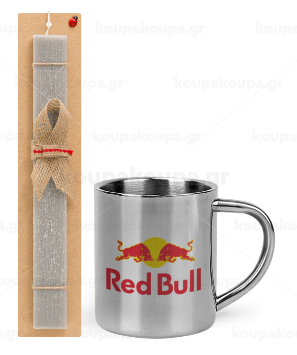 Redbull, Πασχαλινή Λαμπάδα με μεταλλική κούπα θερμό (300ml) & κερί αρωματικό πλακέ (30cm) (ΓΚΡΙ)