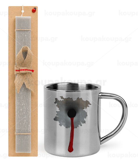 Bullet holes, Πασχαλινή Λαμπάδα με μεταλλική κούπα θερμό (300ml) & κερί αρωματικό πλακέ (30cm) (ΓΚΡΙ)