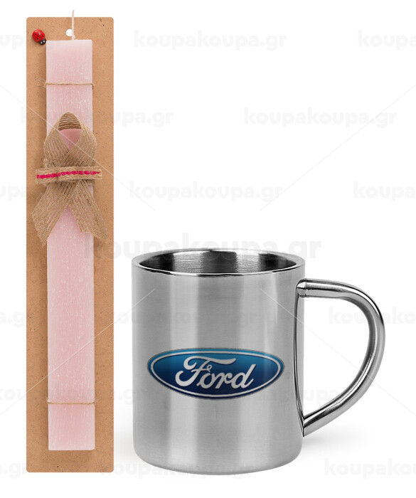 Ford, Πασχαλινή Λαμπάδα με μεταλλική κούπα θερμό (300ml) & κερί αρωματικό πλακέ (30cm) (ΡΟΖ)