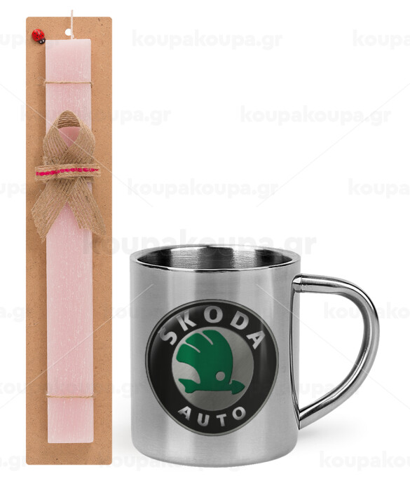 SKODA, Πασχαλινή Λαμπάδα με μεταλλική κούπα θερμό (300ml) & κερί αρωματικό πλακέ (30cm) (ΡΟΖ)