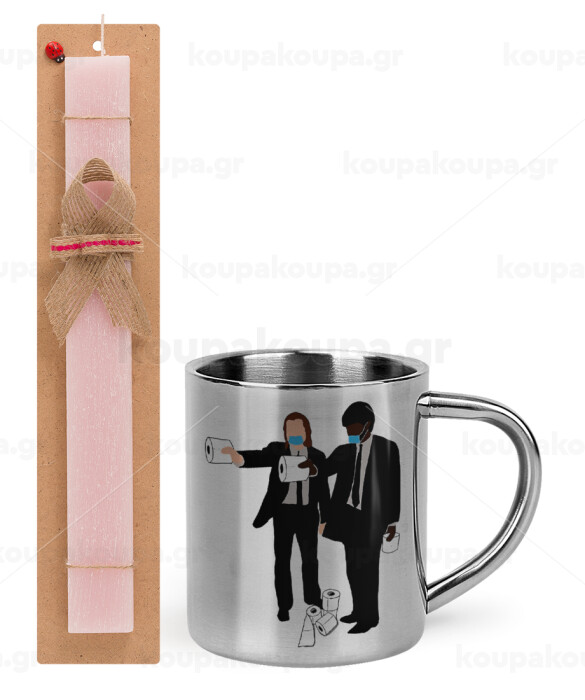 Pulp Fiction 3 meter away, Πασχαλινή Λαμπάδα με μεταλλική κούπα θερμό (300ml) & κερί αρωματικό πλακέ (30cm) (ΡΟΖ)