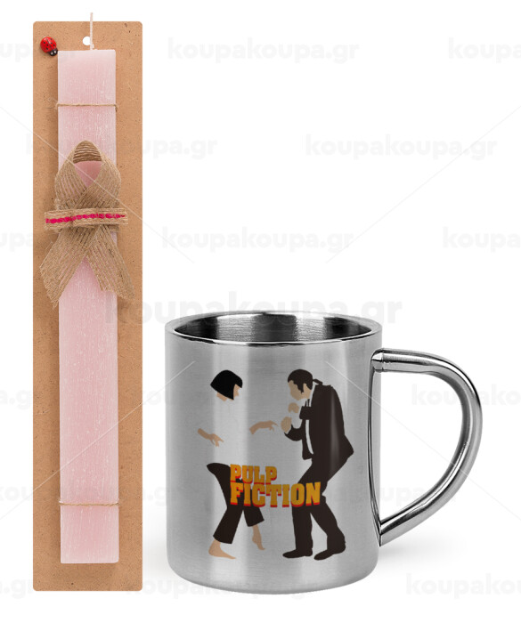 Pulp Fiction dancing, Πασχαλινή Λαμπάδα με μεταλλική κούπα θερμό (300ml) & κερί αρωματικό πλακέ (30cm) (ΡΟΖ)