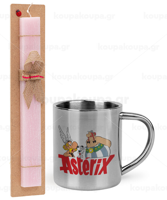 Asterix and Obelix, Πασχαλινή Λαμπάδα με μεταλλική κούπα θερμό (300ml) & κερί αρωματικό πλακέ (30cm) (ΡΟΖ)