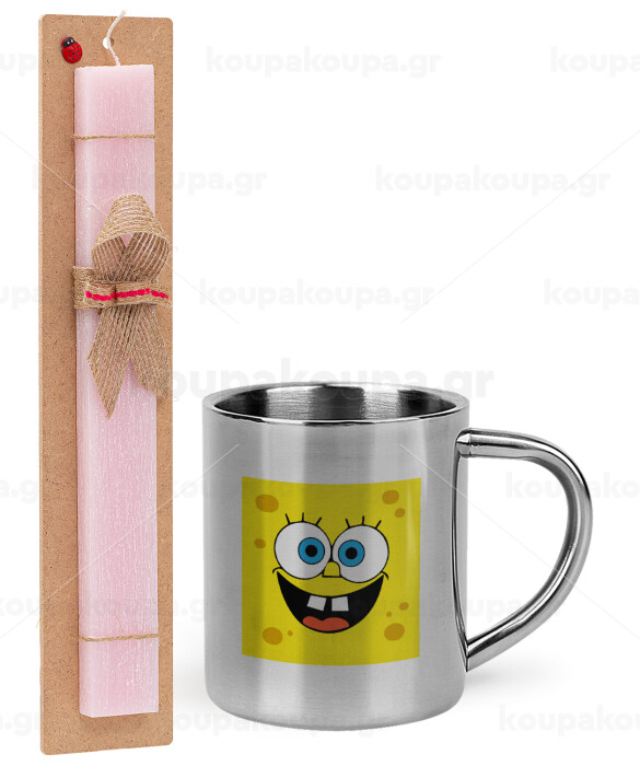 Μπομπ, Πασχαλινή Λαμπάδα με μεταλλική κούπα θερμό (300ml) & κερί αρωματικό πλακέ (30cm) (ΡΟΖ)