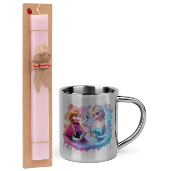 Έλσα & Άννα, Πασχαλινή Λαμπάδα με μεταλλική κούπα θερμό (300ml) & κερί αρωματικό πλακέ (30cm) (ΡΟΖ)