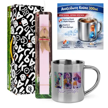 HUNTR/X K-pop girl group, Πασχαλινή Λαμπάδα με μεταλλική κούπα θερμό (300ml) & κερί αρωματικό πλακέ (30cm) (ΡΟΖ)